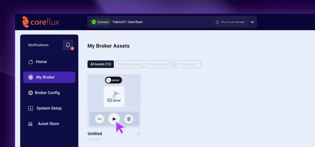 Once you have successfully logged into your Coreflux Account, ensure you are connected to the appropriate Coreflux MQTT broker where you intend to install connectors. If you are not connected to the right broker, you will not be able to proceed with the installation.