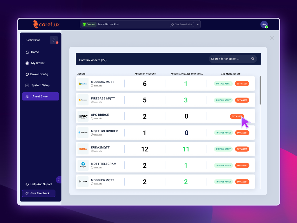 In this section, we detail the process of purchasing, installing, and managing a connector. Follow these steps to efficiently set up your connectors within the Coreflux system.