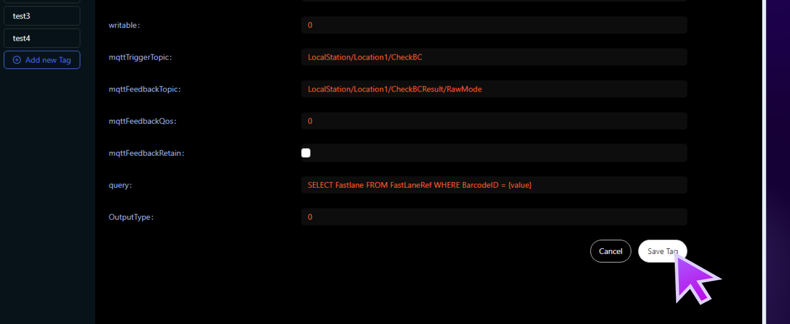 - Add a New Tag: Click the Add New Tag button to create a new tag. The necessary fields will be populated based on the current configuration settings.